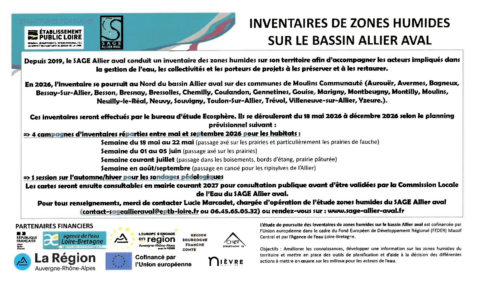 Inventaire des Zones humides sur le Bassin Allier Aval - Mairie Bessay sur Allier